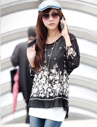 Casual Floral Printed Chiffon Top in Loose Fit For Women