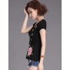 Aristocratic Slim Fit T-Shirt with Embroidered Peony For Women
