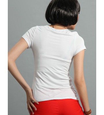 Classic V-Neck Slim Tee in Large Floral Printed For Women