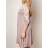 Casual Lace Panel Asymmetric Hem Dress in Round Neck