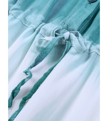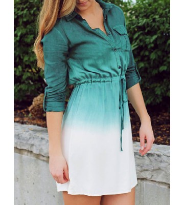 Leisure Ombre Color Patch Pocket Shirt Dress with Tabbed Sleeve