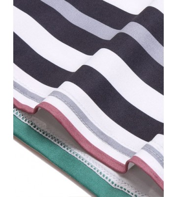 Relaxed Stripe Printed Color Panel Long Sleeve Dress in Black