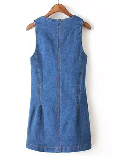 Preppy Deep V-Neck Zipper Front Sleeveless Dress in Slim Fit