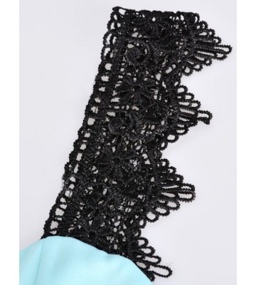 Girlish V Neck Lace Suspender Open Back Mini Dress in Pleat