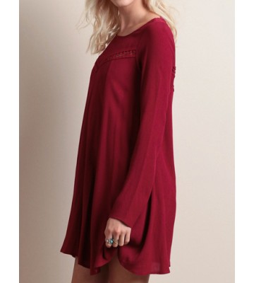 Loose Fit Cut Out Back Long Sleeve Day Dress in Red