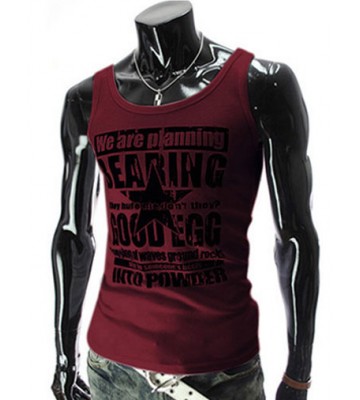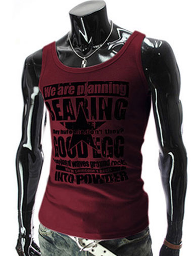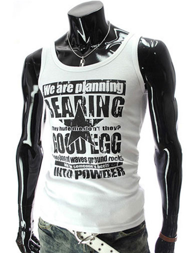 Name: European Contrast Letters Printed Round Neck Slim Fit Tank Top